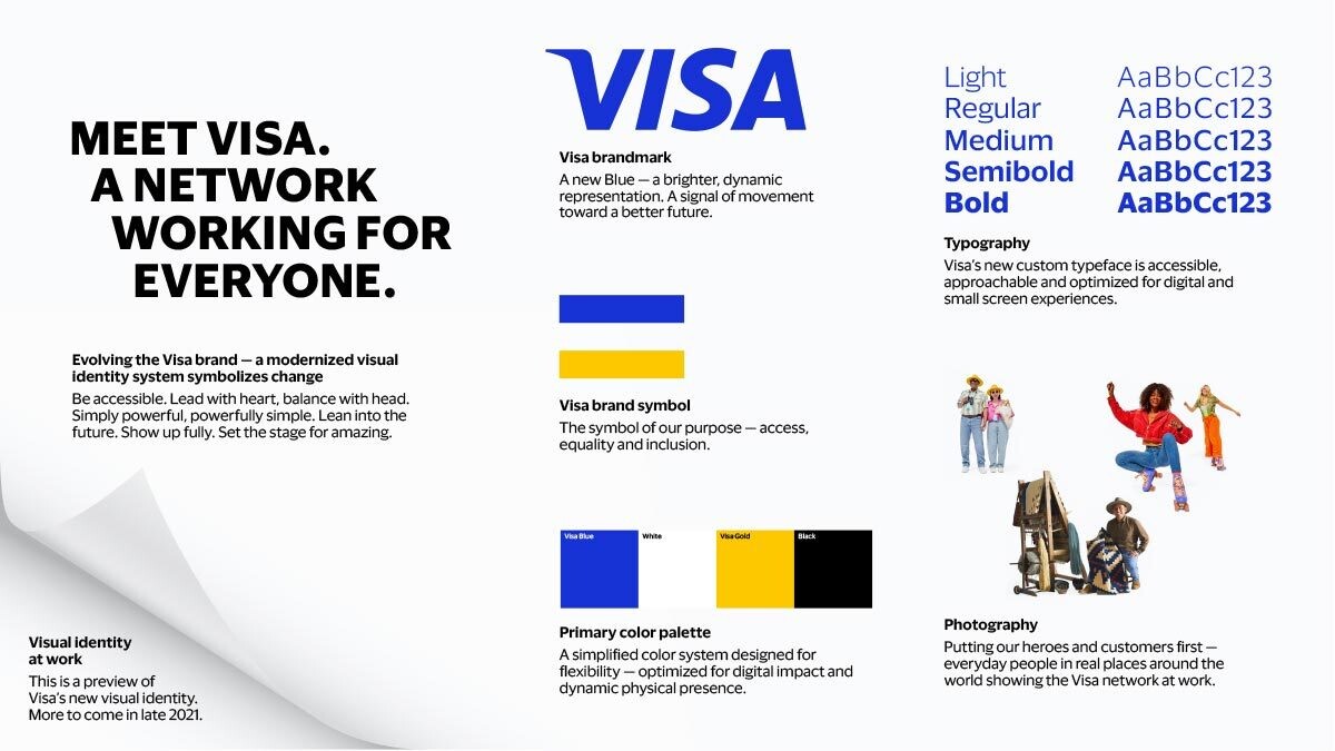 Visa представила обновленные логотип, цветовую гамму и фирменный шрифт.Цвета олицетворяют диджитализацию Visa, а в дизайне логотипа нашли отражениеключевые ценности бренда. Фирстиль создан в партнерстве с дизайнерским бюроMucho.Обновление айдентики является первым этапом стратегии развития бренда ипроходит под лозунгом Meet Visa: он подчеркивает многообразие возможностей еесети и обязательства по расширению доступа к мировой экономике. В течение 2021г. обновленный бренд будет представлен в более чем 200 странах присутствияVisa.