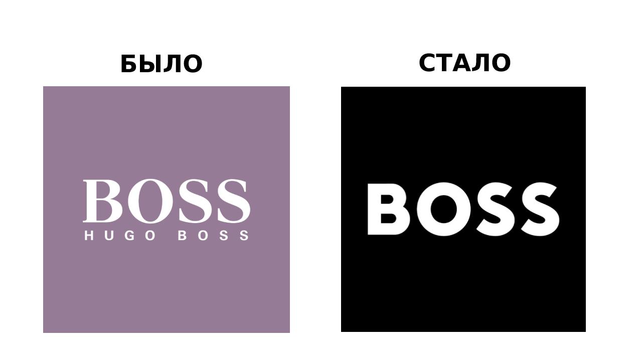 Логотип Boss изменился впервые за 50 лет. Теперь название марки присутствуетв логотипе соло — без приписки Hugo Boss. Также написание бренда стало болеевыразительным. Вторая марка, Hugo, тоже теперь пишется отдельно. Этот логотипне менялся с начала 1990-х.