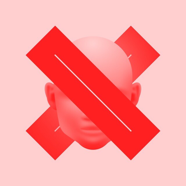 Ранее на логотипе «Не Моргенштерна» стояла фотография красноговопросительного знака на белом фоне. Сейчас — голова лысого человека с краснымкрестом.