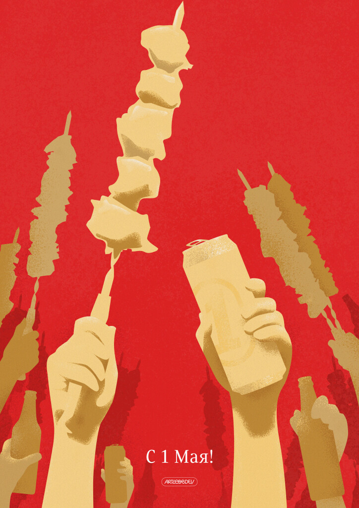 Дизайн-студия Артемия Лебедева представила креатив в честь Праздника весны итруда (отмечается 1 мая). Компания создала плакат в советскомстиле.