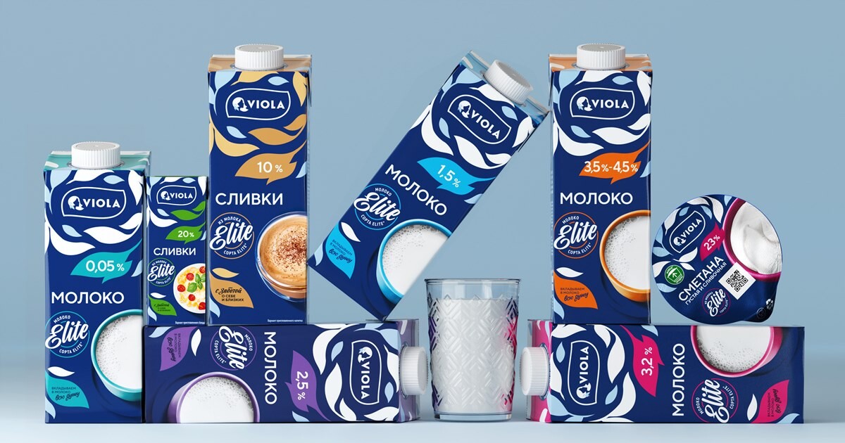 Упаковка молочных продуктов Viola посинела