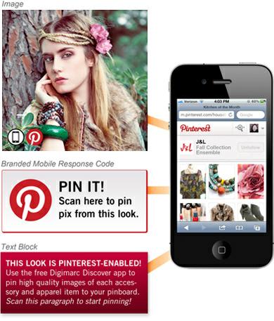 «Print-to-Pin позволяет журналам, рекламодателям, рознице и другим областям направлять пользователей Pinterest с помощью печатных материалов на свои корпоративные сайты без необходимости женить эстетику своих креативных материалов с QR-кодами или Microsoft Tags», сказано в заявлении Digimarc.