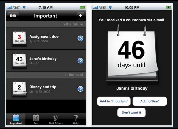 Поддерживает обратный отсчет до нескольких событий одновременно. У приложения есть база, из которой можно выгрузить «обратный отсчет» до значимых общественных и спортивных событий.