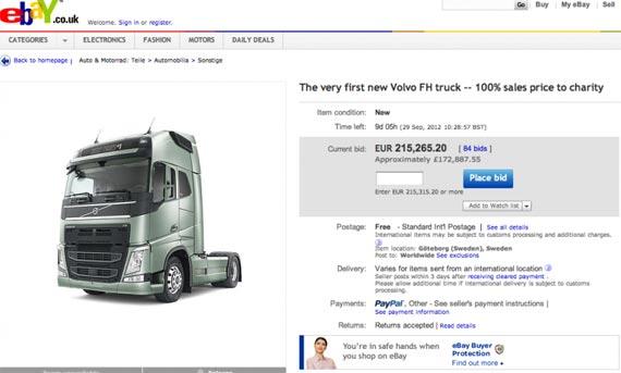 Ресурс начал работу 19 сентября. Цель его создания - распространять информацию о новых Volvo FH, и через eBay, которая имеет более 100 миллионов пользователей по всему миру, достичь как можно большей аудитории. Для привлечения посетителей на сайте есть многое, в том числе, ссылки на захватывающие фильмы. А так как сайт находится на eBay, то конечно, будет аукцион. Люди по всей Европе смогут сделать ставки и купить самый первый экземпляр серийного производства нового Volvo FH. Стартовая цена составляет один евро и все деньги от аукциона пойдут на благотворительность.