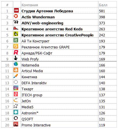 Объявлены результаты первого Единого Рейтинга веб-студий