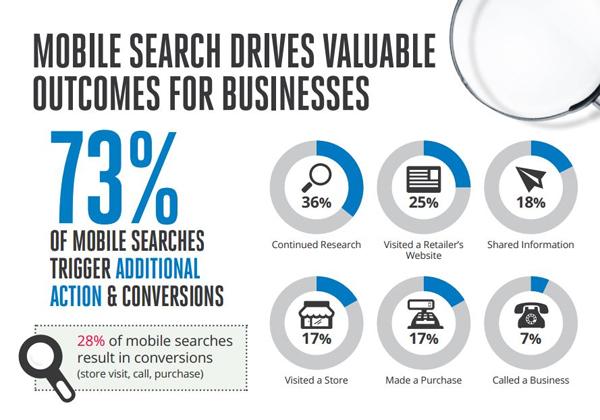 В подтверждение важности мобильного маркетинга компания делает отсылку на свою презентацию, построенную на собственных данных и исследовании Nielsen. Так, по данным Google, 28% поисков на мобильных устройствах заканчиваются визитом в магазин, звонком, или покупкой. И если грамотно построить стратегию мобильного маркетинга, то можно значительно повысить свои доходы.