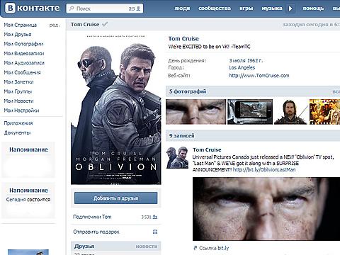 Судя по интересу аудитории, знаменитости делают правильный выбор. В некоторых случаях, любопытство пользователей переходит границы. К примеру, сейчас из-за этого сложно попасть на страницу Тома Круза. «Мы обнаружили на странице Тома подозрительную активность и временно заморозили ее, чтобы вырвать из рук злоумышленников, - пишет администратор «ВКонтакте». И тут же предлагает выполнить пользователям миротворческую миссию: «Если у Вас есть возможность связаться с Томом, сообщите ему, что его страница в безопасности, но нуждается в разморозке».