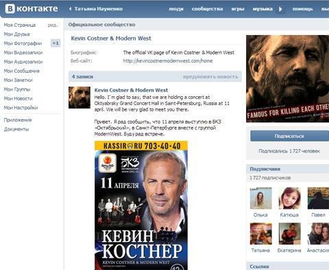 Пока российская прогрессивная общественность обсуждает реальность сотрудничества руководства сети «ВКонтакте» с госорганами безопасности, иностранные актеры и певцы заводят там свои аккаунты. Вслед за Викторией Бекхэм и Томом Крузом «ВКонтакте» поселился знаменитый телохранитель Кевин Костнер