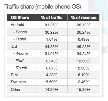 Ниже в табличке более подробная статистика по рекламному трафику и долям выручки мобильных платформ: