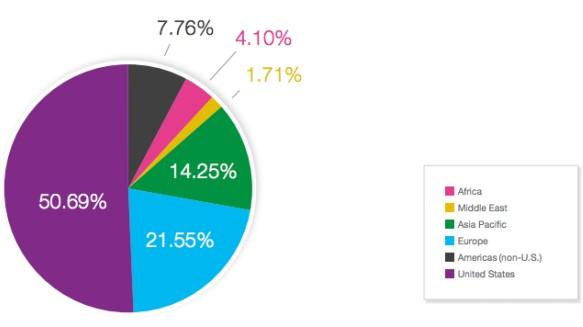 Opera сообщает, что США продолжают генерировать большинство запросов рекламы на всех мобильных платформах, хотя доля этой страны постепенно сокращается, поскольку другие регионы растут более быстрыми темпами. США по-прежнему генерируют львиную долю выручки на мобильной рекламной платформе Opera – 75,4%. Opera отмечает ускорившийся рост запросов мобильной рекламы в Европе, чья доля сейчас достигла 21%, а в прошлом квартале составляла всего 14,6%. Большая часть мобильного рекламного трафика в Европе генерируют пять ключевых рынков: Великобритания, Италия, Германия, Франция и Испания.