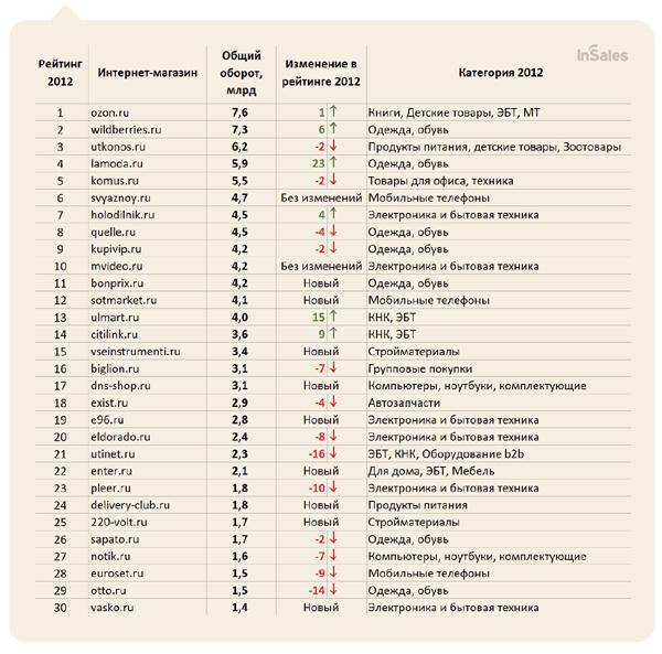 Компания InSales.ru выпустила ежегодный отчет «Рынок интернет-торговли в России» и рейтинг интернет-магазинов Топ-30