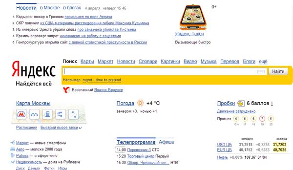 Главная страница 'Яндекса' является одной из самых посещаемых в российском сегменте интернета. По данным компании comScore за февраль 2013 года, на сайт yandex.ru ежемесячно заходят 45 миллионов человек.