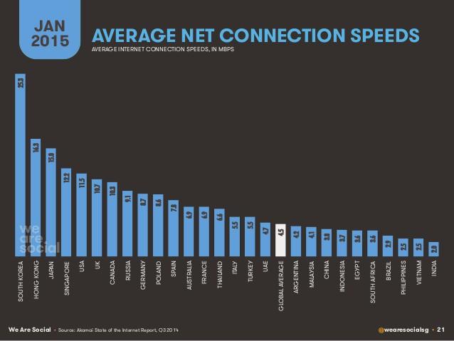 Из отчёта становится известно, что самое быстрое интернет-подключение в мире у жителей Южной Кореи, Гонконга и Японии (в этих же странах лучший мобильный интернет), тогда как Россия обгоняет многие европейские страны и заметно превосходит средний уровень.