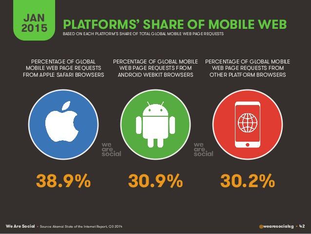 По данным We Are Social в потреблении мобильного трафика в мире по-прежнему лидируют владельцы устройств Apple, однако пользователи Android отстают от них не сильно.