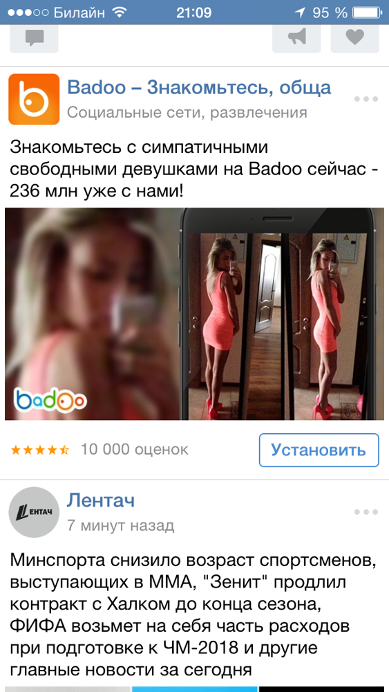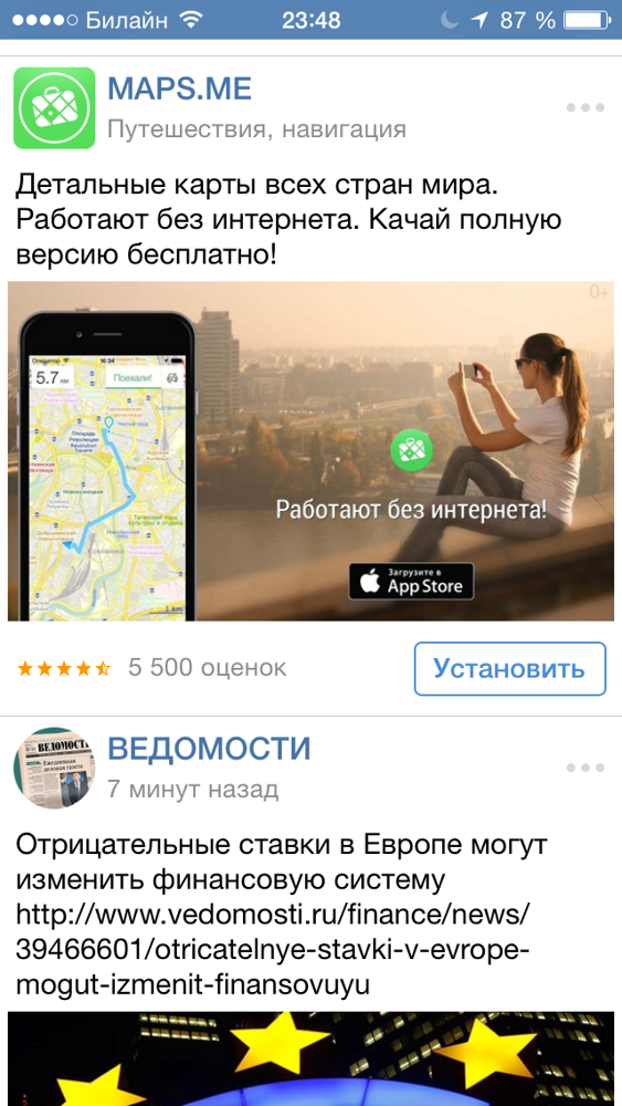 «ВКонтакте» добавил трафика мобильным рекламодателям — теперь реклама есть и в приложении для iOS