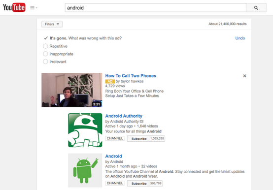 YouTube запустил в тестовом режиме сервис, позволяющий рекламодателю узнать, почему пользователь отключил его рекламу
