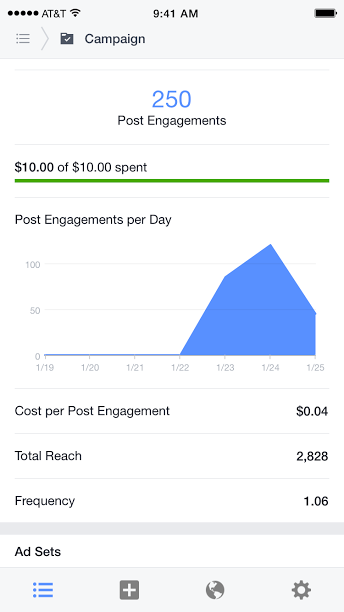 Facebook запустил мобильное приложение для управления рекламными кампаниями
