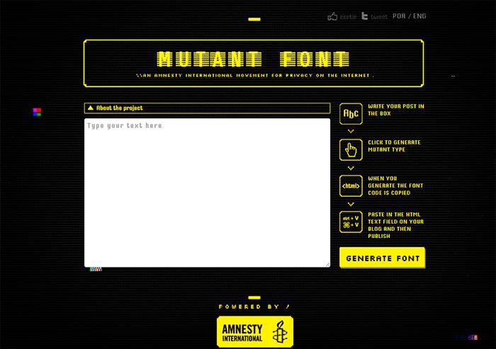 Правозащитная организация и бразильское агентство Africa создали веб-сайт, который генерирует шрифты, нечитаемые машинами. Пользоваться Mutant Font довольно просто: если вы хотите разместить пост в сети, зайдите на сайт, введите текст в окошко. Программа сгенерирует код, который потом можно вставить в блог.