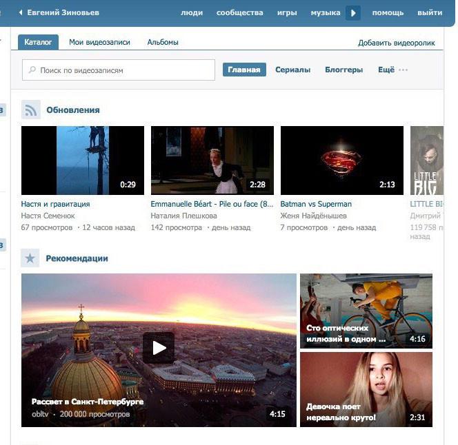 «ВКонтакте» в течение суток изменит внешний вид раздела с видеозаписями, разделив его на тематические категории. Об этом рассказал на форуме РИФ+КИБ руководитель отдела клиентского сервиса «ВКонтакте» Александр Круглов