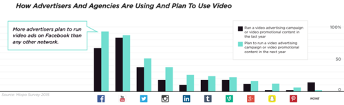 Растущая популярность и доступность видеорекламы на социальных платформах – ещё один факт, выявленный в исследовании компании. В 2015 году опрошенные маркетологи планируют увеличить количество видеорекламы по всем социальным медиа, включая Twitter, Instagram, LinkedIn, Tumblr и другие.