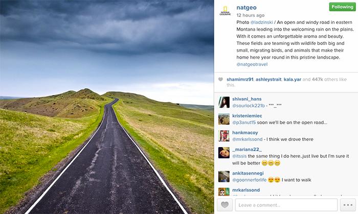 1. Самый простой и очевидный вариант — использование Instagram для создания фотогалерей. Так поступает, например, National Geographic — и ландшафтные снимки, публикуемые изданием, регулярно собирают сотни тысяч откликов.