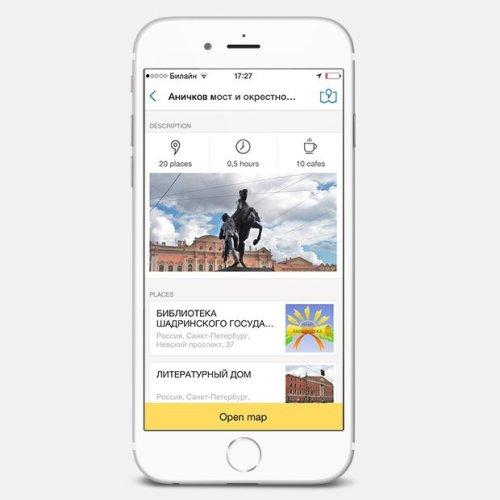«„Прогулки“ позволяют понять, что интересного есть поблизости и во всём городе. Приложение предлагает также небольшие экскурсии — на час-полтора. Путеводитель выделяет области, интересные для прогулок, на основе информации о расстоянии между объектами, их количестве, рейтинге и множестве других факторов. Все интересные места можно увидеть и списком, и на карте», — объясняют в компании.