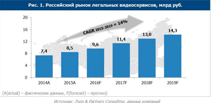 По итогам 2015 года объем российского рынка легальных видеосервисов достиг 8,5 млрд руб. В 2015 году наиболее распространенной моделью монетизации осталась рекламная (AVOD). Но ее доля на рынке немного снизилась за счет роста платных сервисов. Однако, по прогнозам J’son & Partners, AVOD будет оставаться абсолютным лидером рынка и сохранит свою долю не менее чем в 65% до 2019 года.