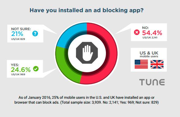 Компания интернет-маркетинга Tune опубликовала результаты нового исследования, посвященного использованию блокировщиков рекламы для смартфонов. В Tune утверждают, что опросили 4000 владельцев смартфонов в Европе и США.