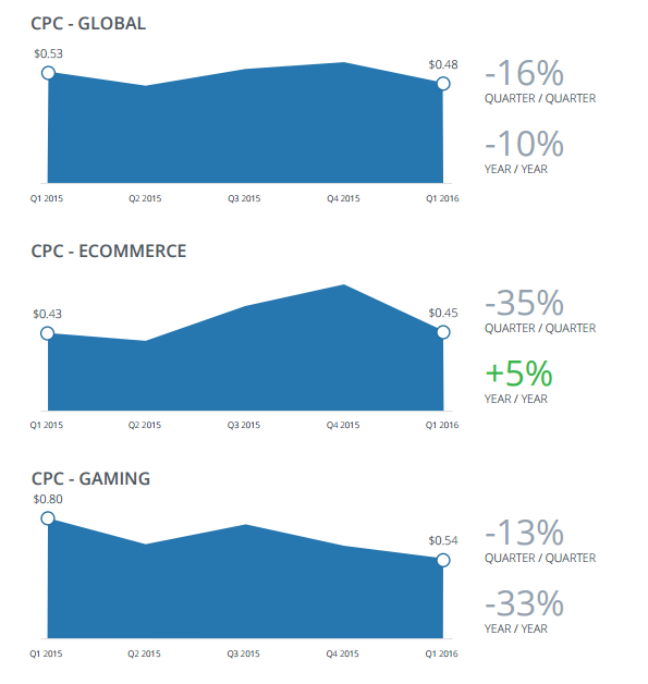 По данным Nanigans, CTR в Facebook в первом квартале 2016 года вырос на 11% относительно четвертого квартала прошлого года, достигнув среднего показателя в 1,25%. Это самая высокая цифра, зафиксированная Nanigans за весь период измерений – с третьего квартала 2013 года. Год к году это изменение составило 54%.