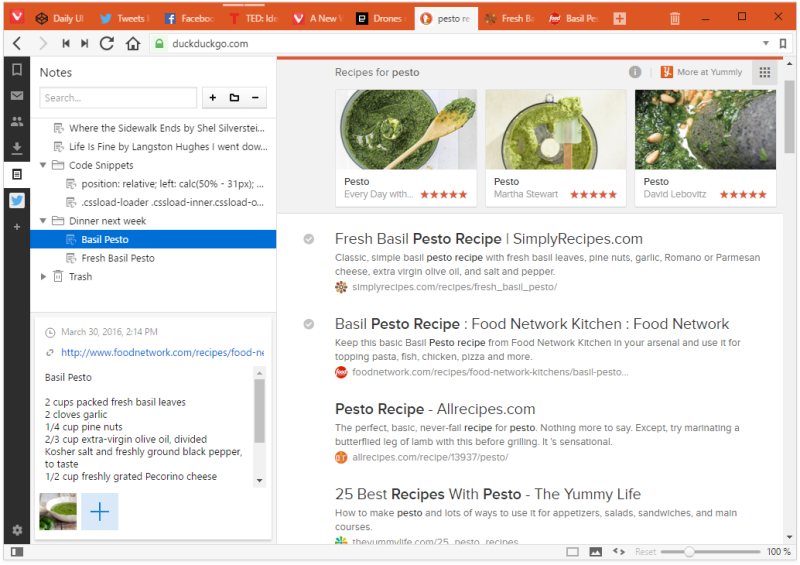 Заметки. Чтобы воспользоваться функцией, необходимо выделить на странице фрагмент текста и сохранить его как заметку. Vivaldi может запомнить, когда и на каком сайте вы нашли текст, а также предложит сделать скриншот страницы.
