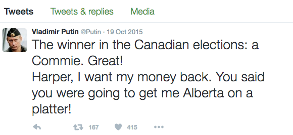 Администрация Twitter разблокировала пять популярных аккаунтов, пародирующих российских политиков. Все микроблоги были недоступны по меньшей мере сутки. В числе заблокированных 31 мая и разблокированных 1 июня аккаунтов были Darth Putin (@DarthPutinKGB), пародирующий российского президента Владимира Путина, с более чем 60 тыс. подписчиков, @SovietSergey (чуть более 1 тыс. подписчиков; отсыл к главе российского МИДа Сергею Лаврову), @AmbYakovenkoNo (740 читателей; отсыл к российскому послу в Великобритании Александру Яковенко), @RusEmbassyNot (около 1,5 тыс. подписчиков; пародийный аккаунт российского посольства в Великобритании) и Soviet РоссиЯ (@Russia__Not; 680 читателей), который именует себя «неофициальным твиттером Советской России».
