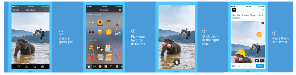 Twitter представляет стикеры (#Stickers) – новую функцию, которая добавит креативности в фотографии пользователей социальной сети, публикуемые ежедневно в многомиллионном количестве