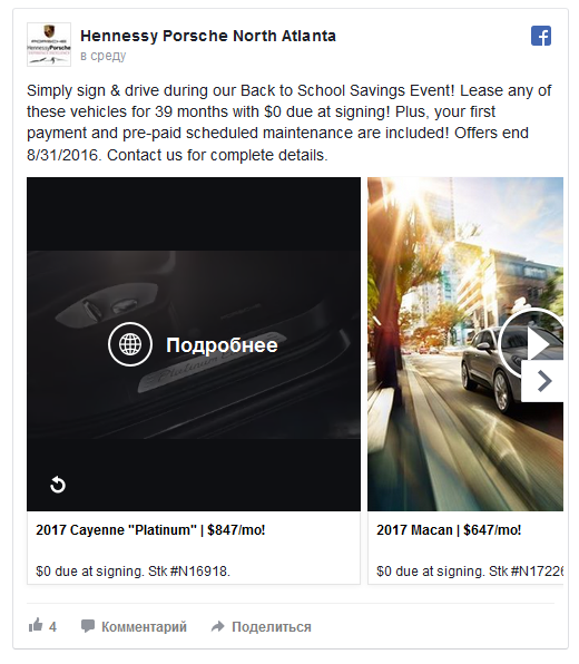 Напомним, что товарные объявления были запущены в Facebook в феврале 2015 года. Объявления динамически оптимизированы и демонстрируются пользователям с соответствующими интересами. В объявлении могут быть представлены как разные товары, так и выделены различные характеристики одного и того же товара.