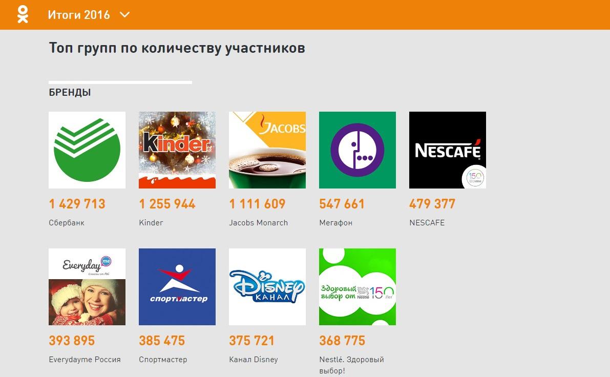 «Одноклассники» рассказали о самых популярных группах брендов в соцсети в 2016 году