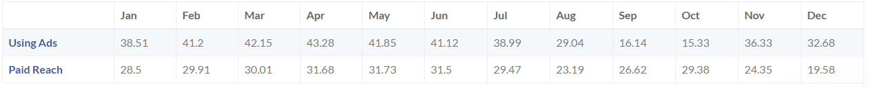 Количество страниц, продвигаемых с помощью платной рекламы, во второй половине года уменьшилось.
