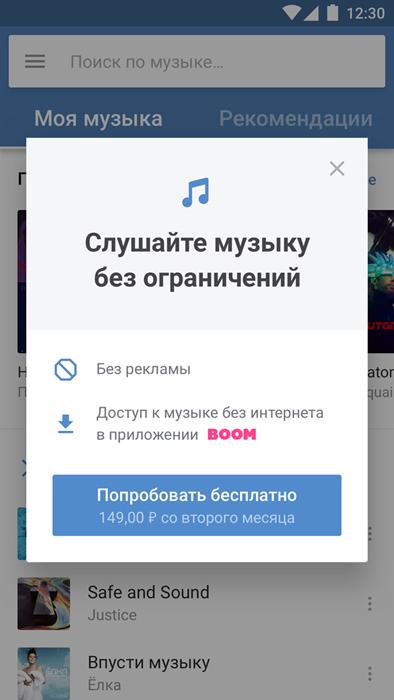 В соцсеть теперь интегрировано приложение для прослушивания музыки по подписке Boom. Подписка на сервис составит 149 руб./мес., первый месяц пользоваться приложениям можно будет бесплатно.