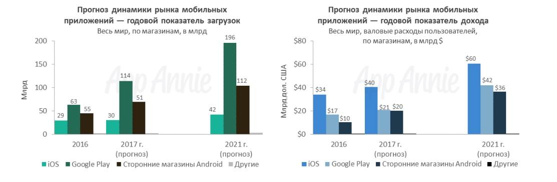App Annie: Выручка магазинов мобильных приложений в 2016 году в России составила $300 млн