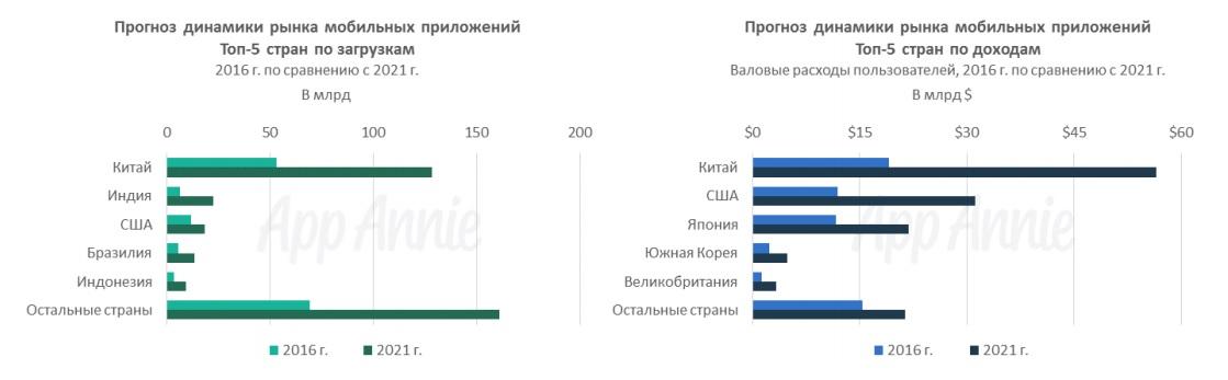 Несмотря на относительно невысокие затраты, Россия находится на пятом месте среди всех стран по количеству загрузок в Google Play и App Store, уступая США, Китаю, Индии, Бразилии.