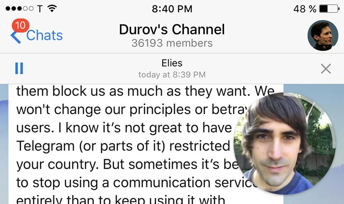 Кроме видеосообщений, в месенджере появился видеохостинг Telescope. Видео с него можно смотреть без учетной записи Telegram, также возможно делиться ими в Facebook и Twitter