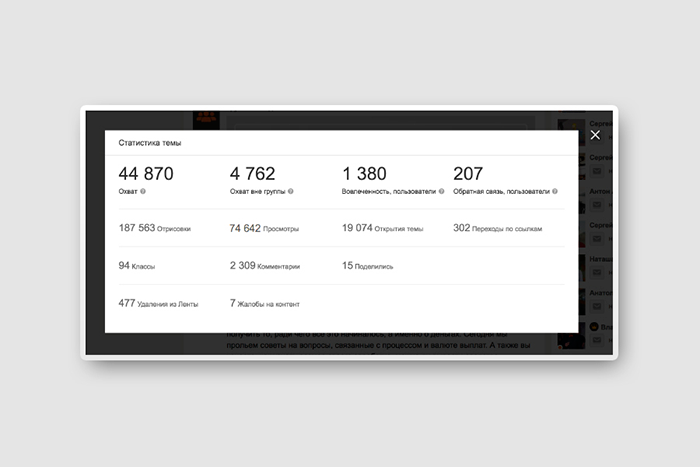 Все счетчики просмотров пока доступны только в веб-версии социальной сети. Позже будут добавлены просмотры в мобильной версии ОК и приложениях на iOS и Android. Тем не менее в статистике учитываются просмотры со всех платформ. В заметках пользователей будут отображаться только количество просмотров, а под групповой темой по клику на значок счетчика будет открываться новое окно со статистикой по данной теме: просмотры, охват, вовлеченность пользователей и пр.