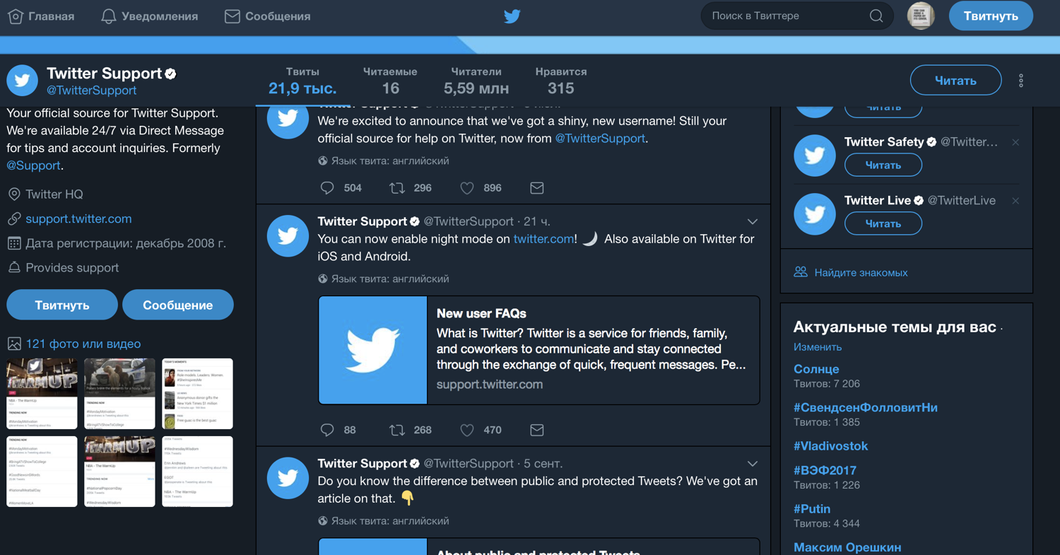В Twitter появился ночной режим (Night Mode) в десктопной версии сервиса. Об этом сообщается в Twitter компании.