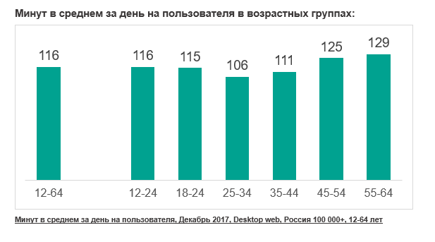 В среднем в декабре 2017 года российские пользователи тратили на десктоп 116 минут в день, по данным Mediascope.