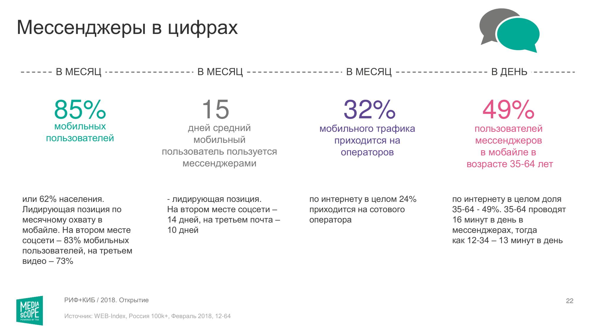 Мессенджерами пользуются 62% населения страны, или 85% мобильных пользователей.