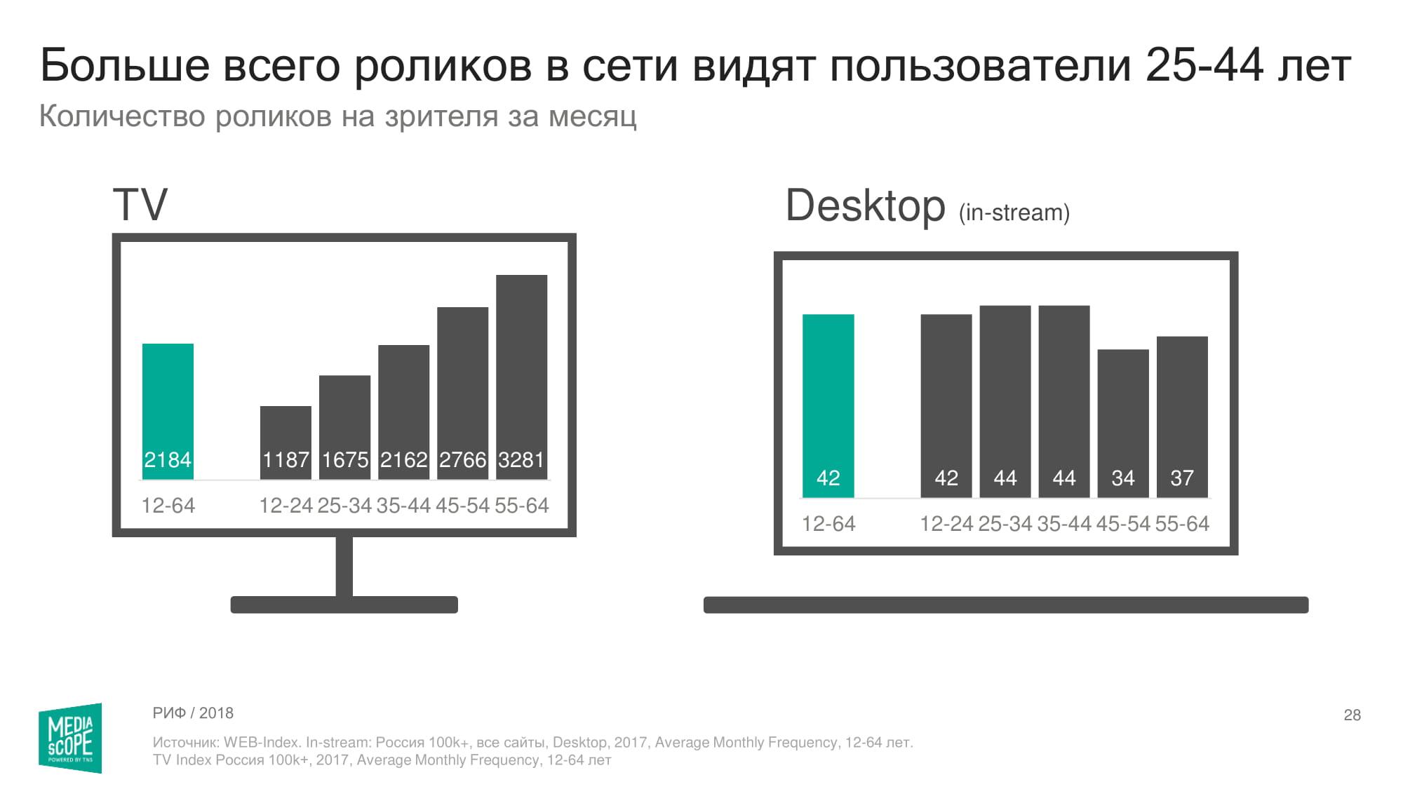 В феврале 41% зрителей посмотрели видео и на десктопе, и на мобайле, при этом 28% – только на мобайле.