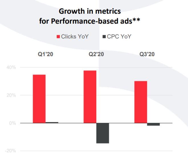 О постепенном восстановлении активности рекламодателей свидетельствуют рост средней ставки CPM в аукционе (на уровне чуть менее 10%) и увеличение количества партнеров myTarget (+25% в сентябре). При этом динамика стоимости клика (СРС) во «ВКонтакте» и myTarget остается в отрицательной зоне второй квартал подряд.