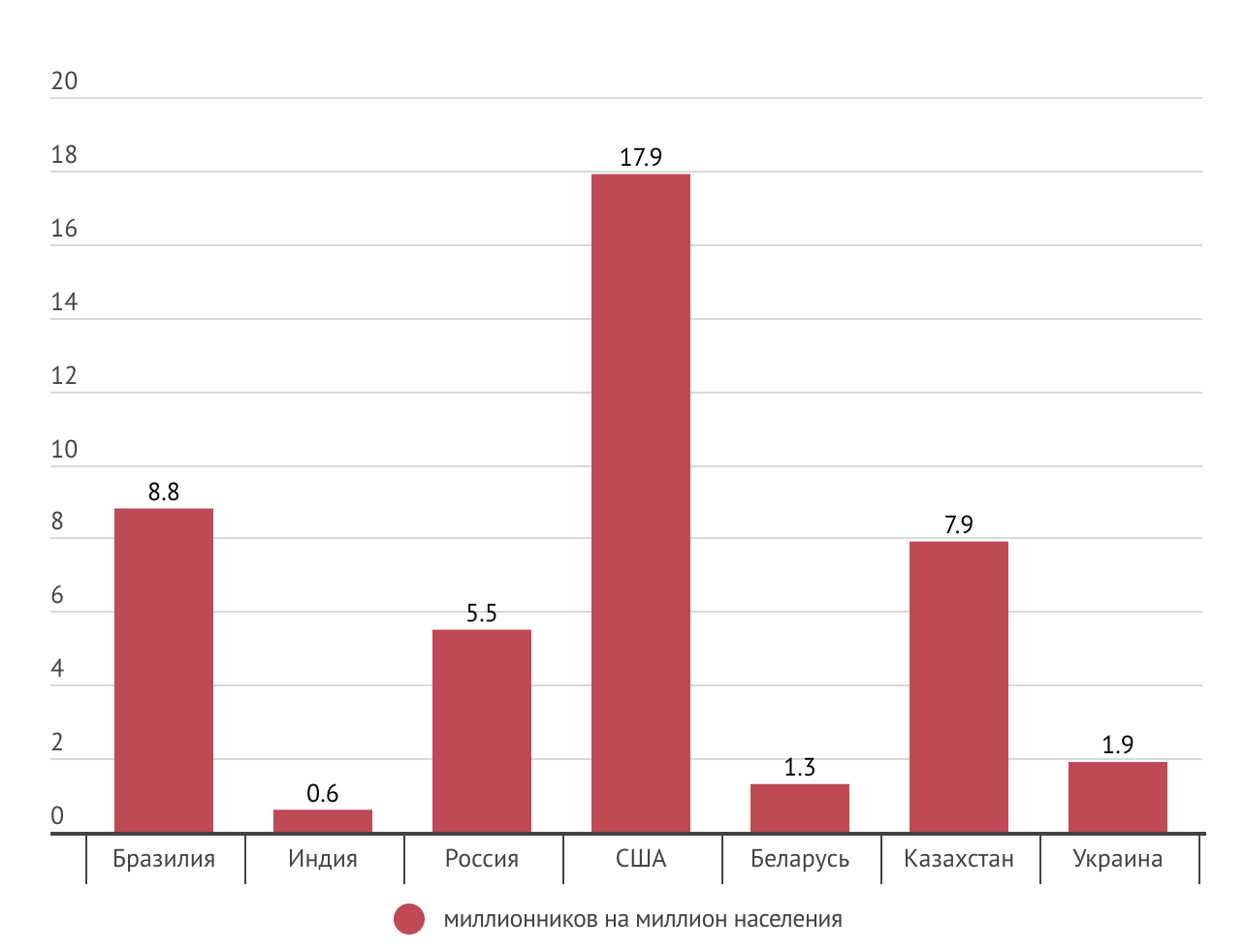 В TrendHERO отмечают, что такая статистика связана с тем, что Instagram вСША развит лучше, чем в других странах. По данным сервиса, в Соединенных Штатахпочти 18 блогеров-миллионников на миллион жителей страны.