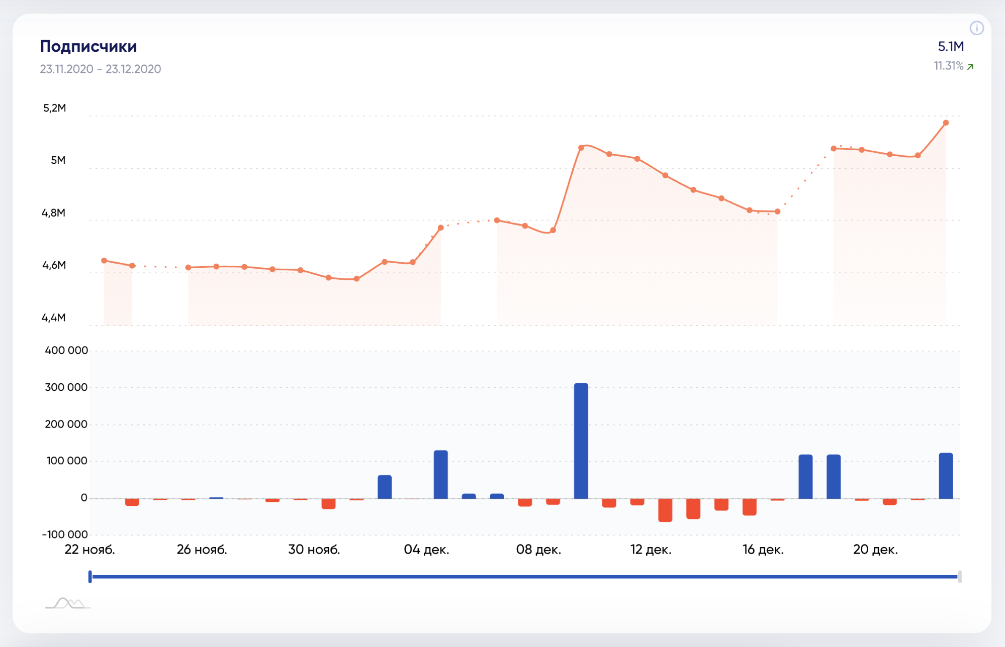 Прирост и отписки говорят о конкурсах по типу Giveaway.