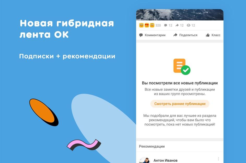Гибридная модель новостной ленты. Пролистав публикации друзей и группв ленте, пользователь увидит рекомендации контента от групп, на которые он неподписан. Разработчики добавили в статистику групп разделение охватов наисточники — охват подписчиков, рекомендуемых публикаций и рекламы. Это поможетавторам определить, какие публикации находят больший отклик у пользователей, аохват создают алгоритмы рекомендаций.