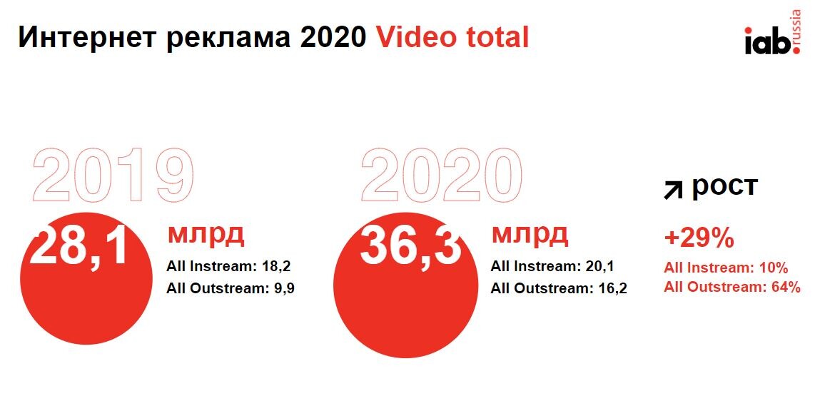 С прошлого года подсегмент Video выделяется внутри каждого из ключевыхсегментов, Branding и Performance. Это связано с тем, что видеореклама сталаиспользоваться не только с имиджевыми целями, но и в качестве инструментапродаж.