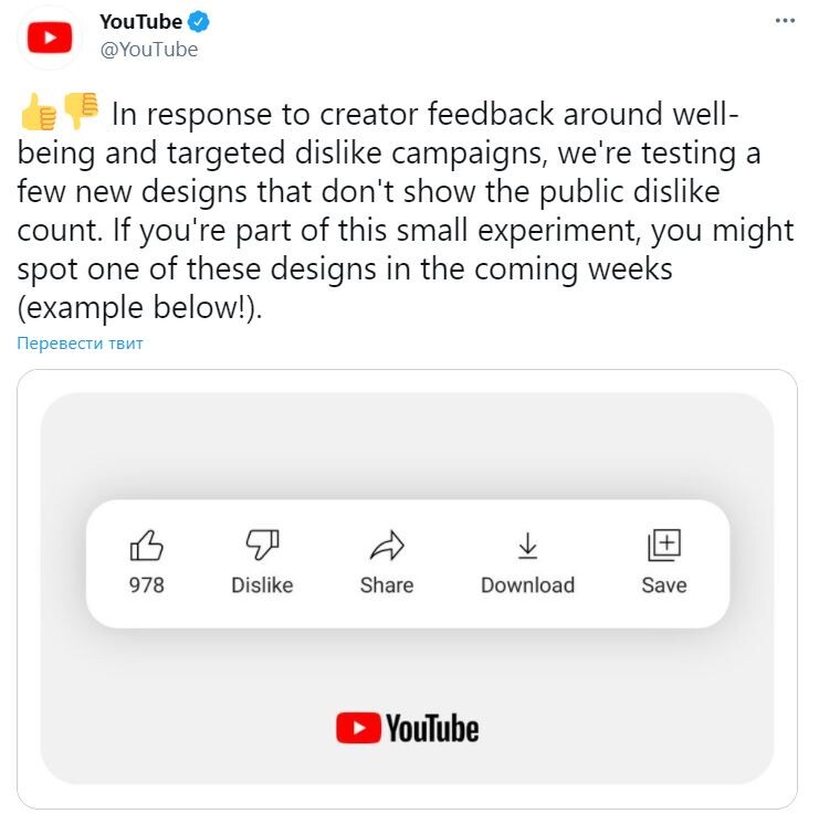 Счетчик дизлайков будет доступен креаторам в разделе YouTube Studio.Зрители, даже если они не видят эту статистику, по-прежнему смогут оценитьвидео. Это обеспечит обратную связь с создателями контента и поможет настроитьрекомендации.